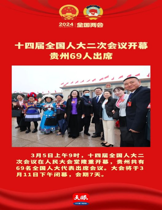 3月5日上午9时,十四届全国人大二次会议在人民大会堂隆重开幕,贵州共有69名全国人大代表出席。